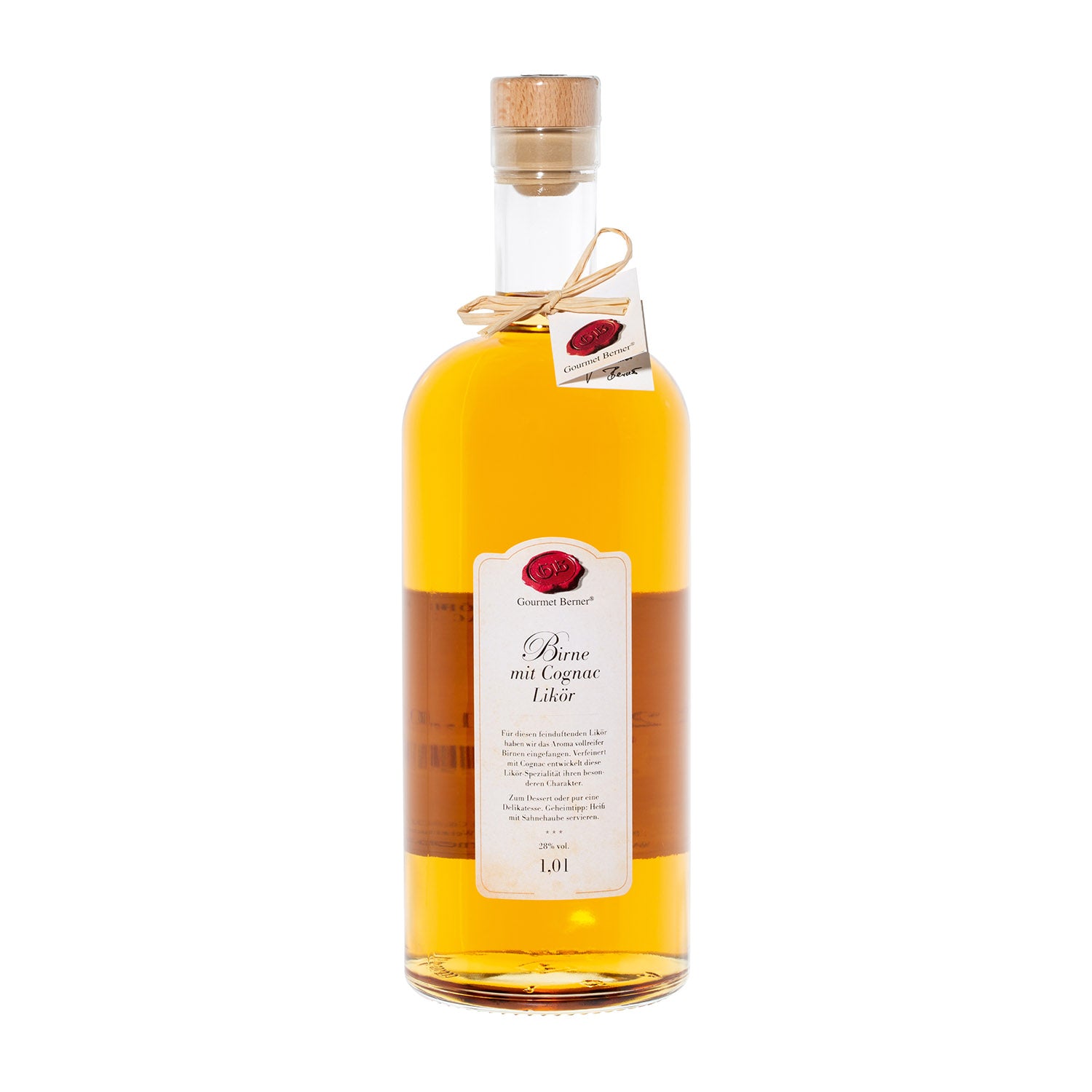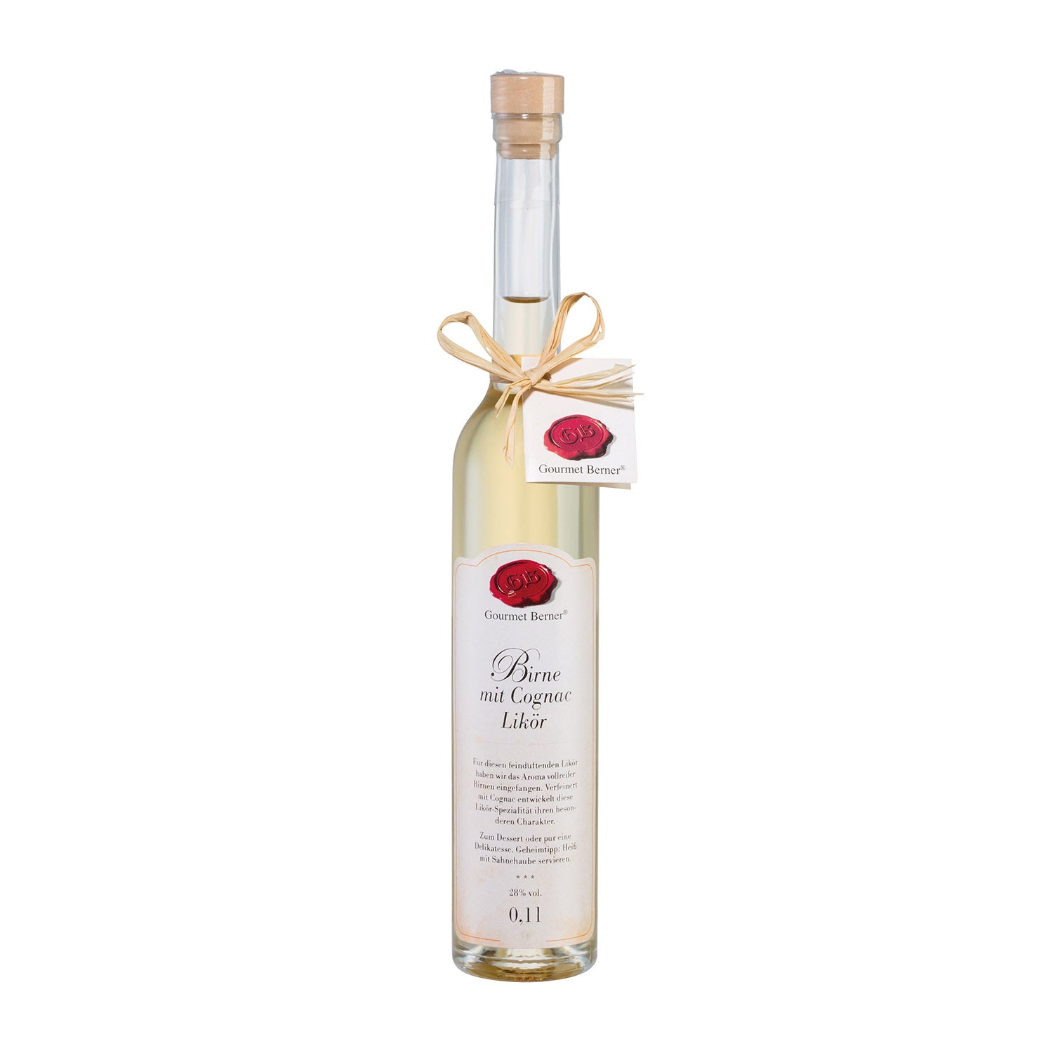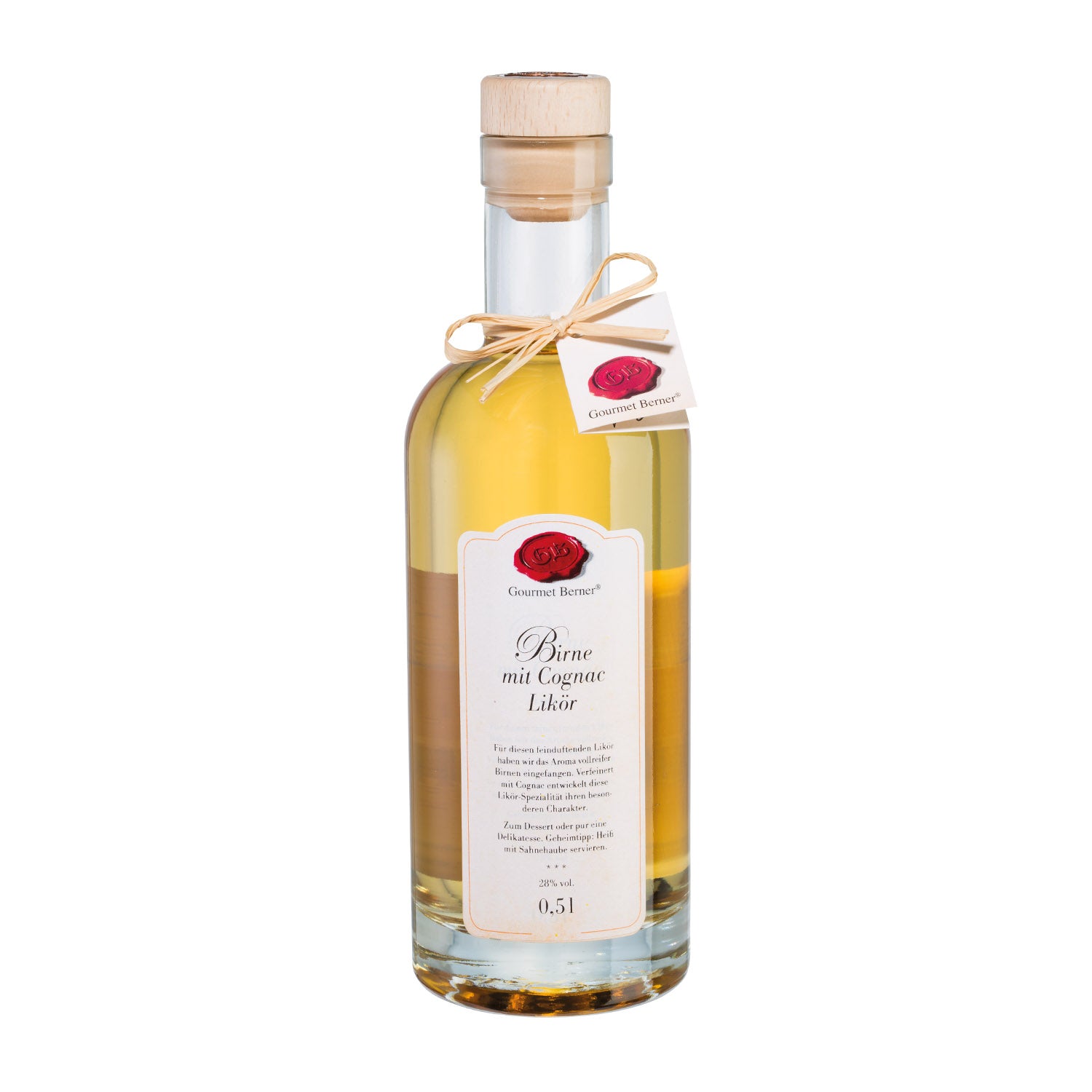 Birne mit Cognac Likör Für diesen feinduftenden Likör haben wir das Aroma vollreifer Birnen eingefangen. Verfeinert mit Cognac entwickelt diese Likör-Spezialität ihren besonderen Charakter. Zum Dessert oder pur eine Delikatesse. Geheimtipp: Heiß mit Sahnehaube servieren.