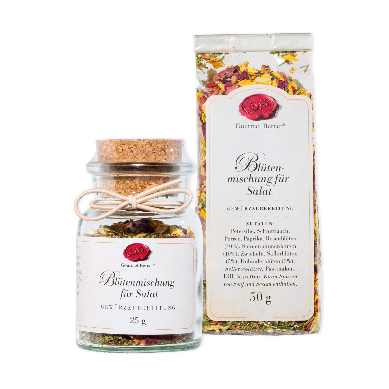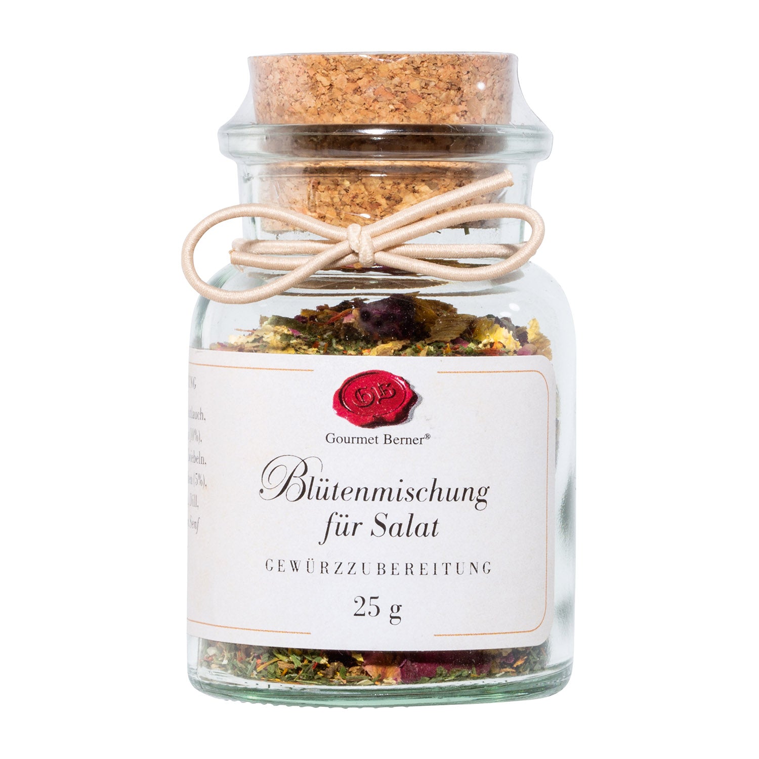 Das kleine Glück, Blütenmischung für Salat, Gewürzmischung Die Krönung für deinen Salat! Bestreue ihn großzügig & würze dein Dressing damit. Schmeckt auch zu Gemüse, Suppen & Gratins sowie für Beilagen wie Reis & Nudeln. Verwende es auch für Dipsaucen.