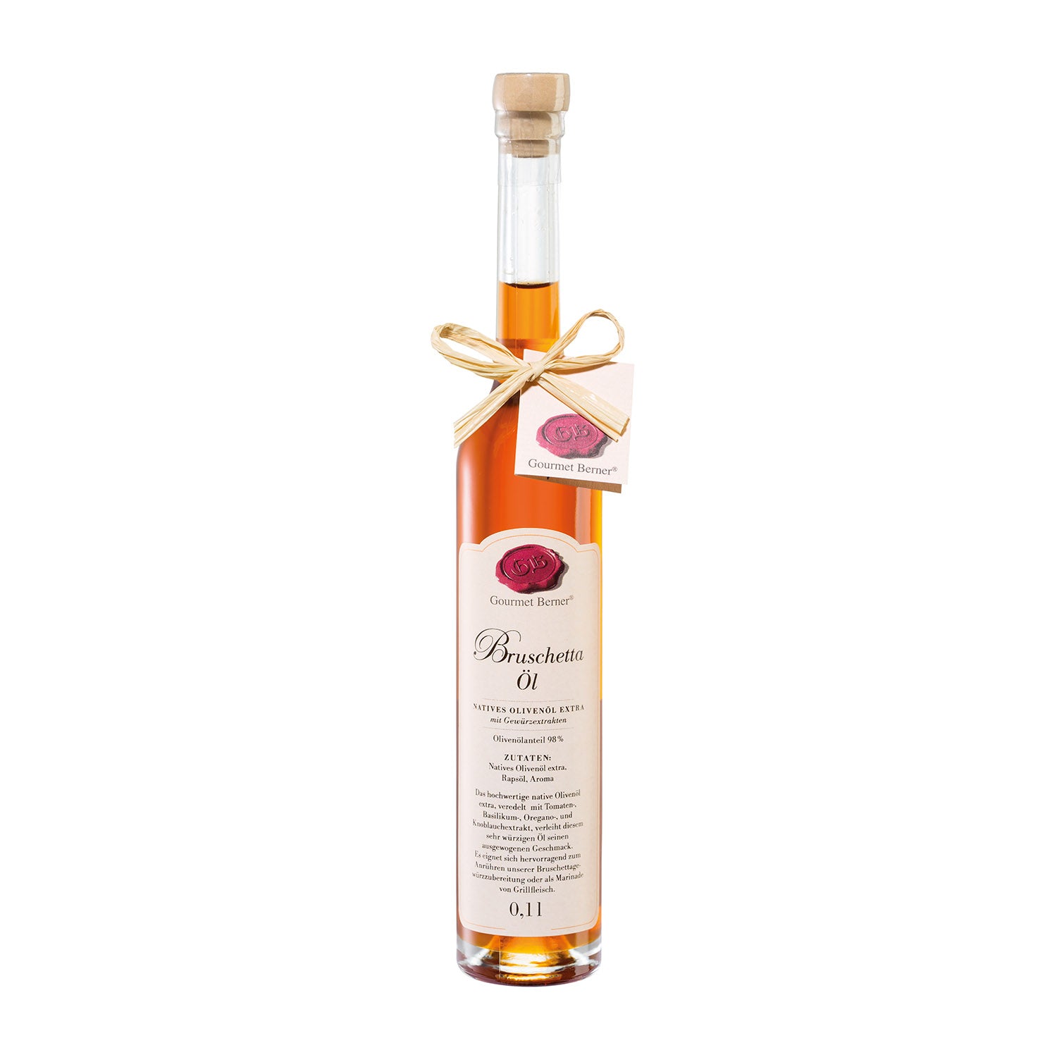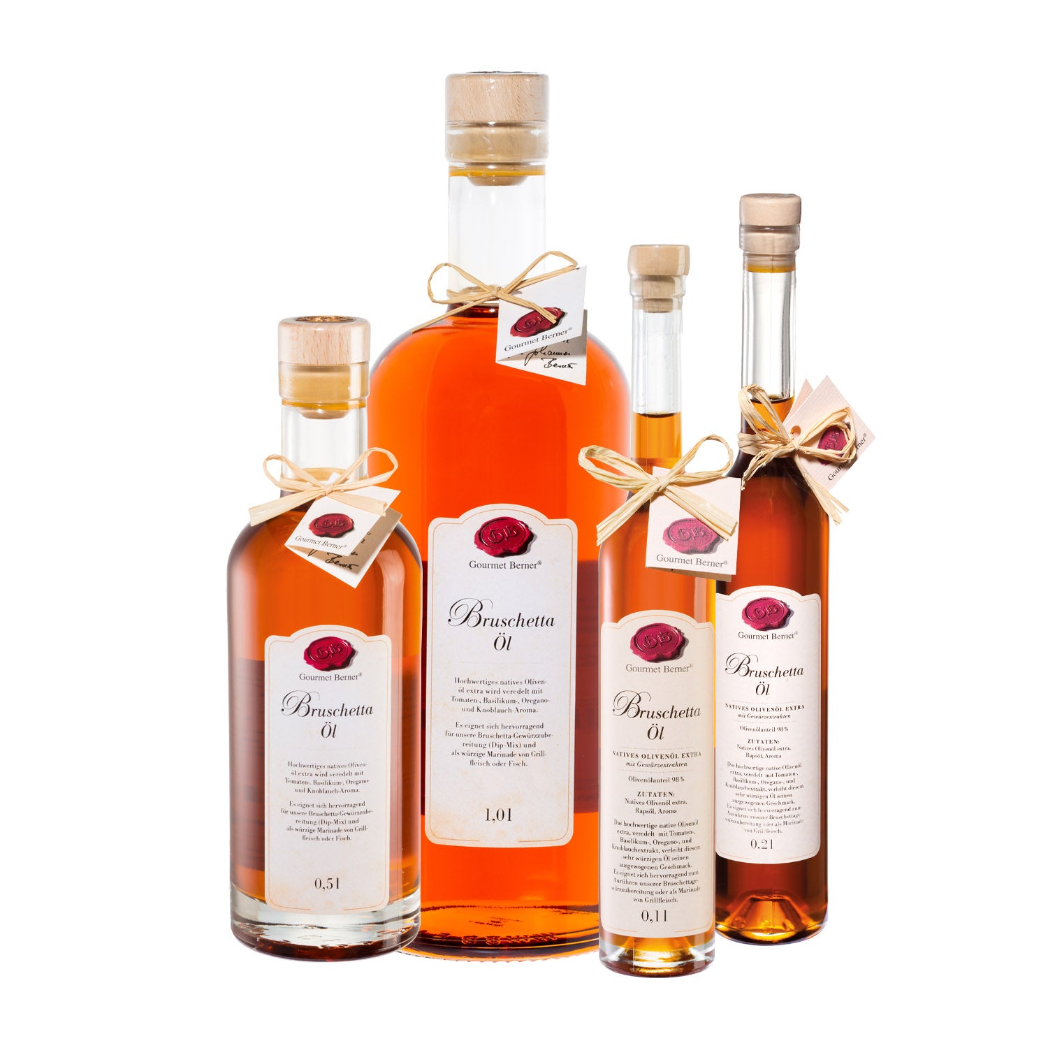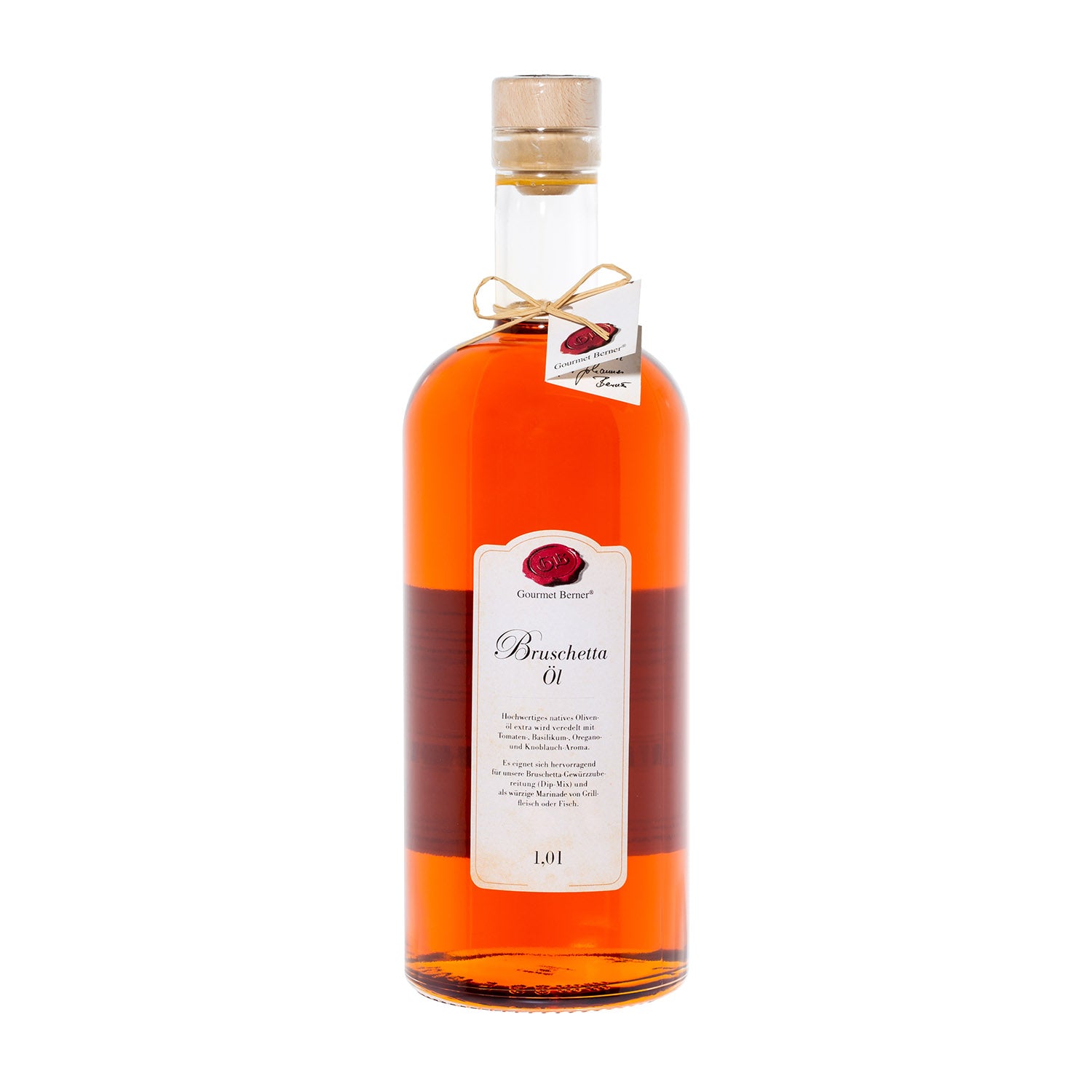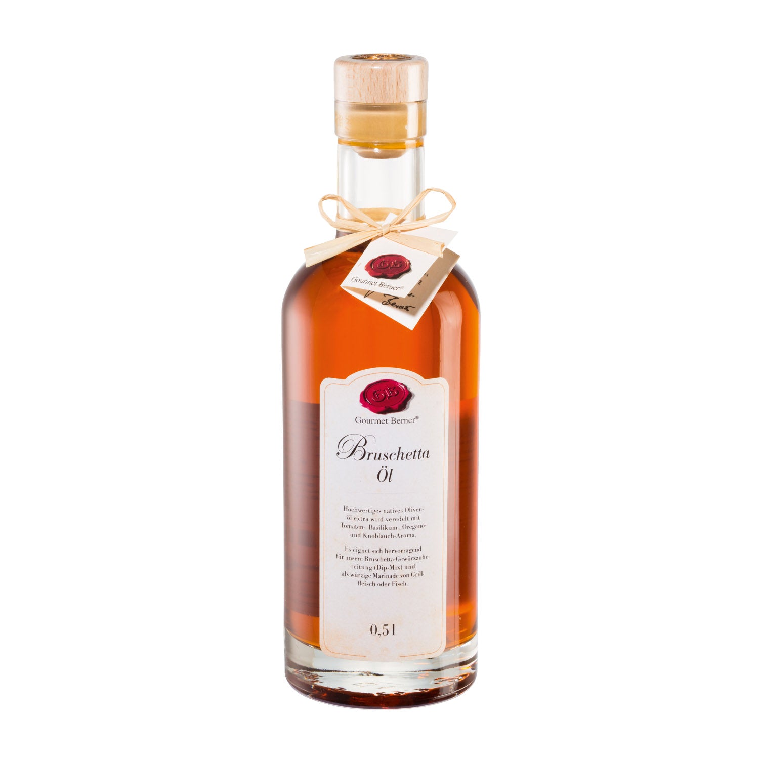 Bruschetta-Öl, Würzöl Hochwertiges Rapsöl und Knoblauchöl werden veredelt mit Tomaten-, Basilikum-, und Oreganoaroma. Es eignet sich hervorragend für unsere Bruschetta-Gewürz-zubereitung (Dip-Mix) und als würzige Marinade von Grillfleisch oder Fisch.