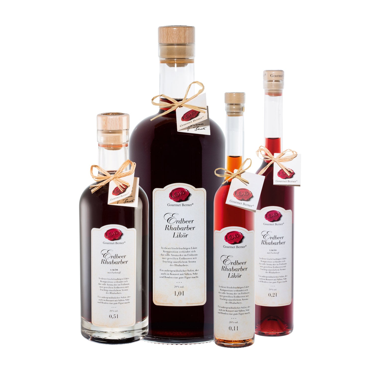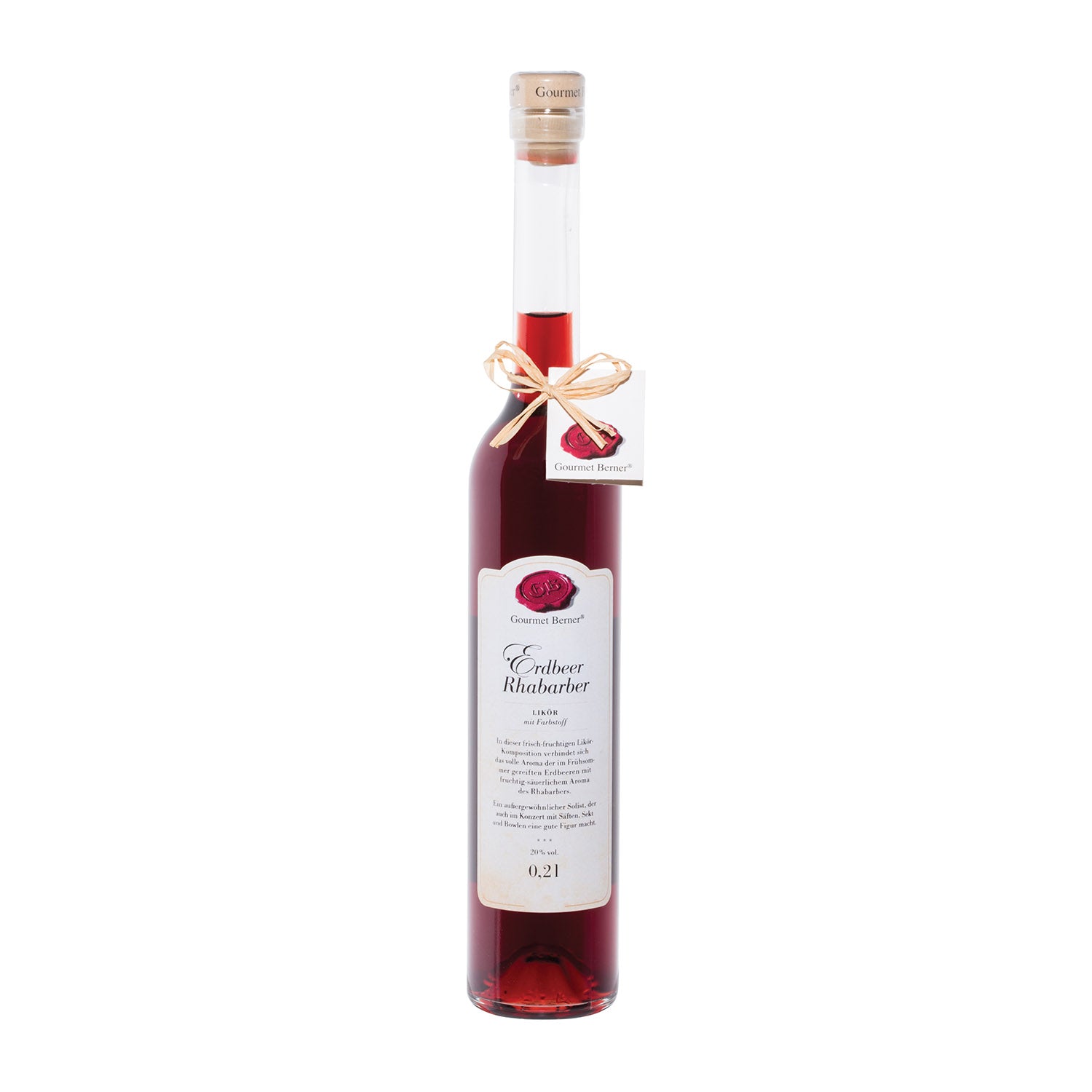 Erdbeer Rhabarber Likör In dieser frisch-fruchtigen Likör-Komposition verbindet sich das volle Aroma der im Frühsommer gereiften Erdbeeren mit fruchtig-säuerlichem Aroma des Rhabarbers. Ein außergewöhnlicher Solist, der auch im Konzert mit Säften, Sekt und Bowlen eine gute Figur macht.