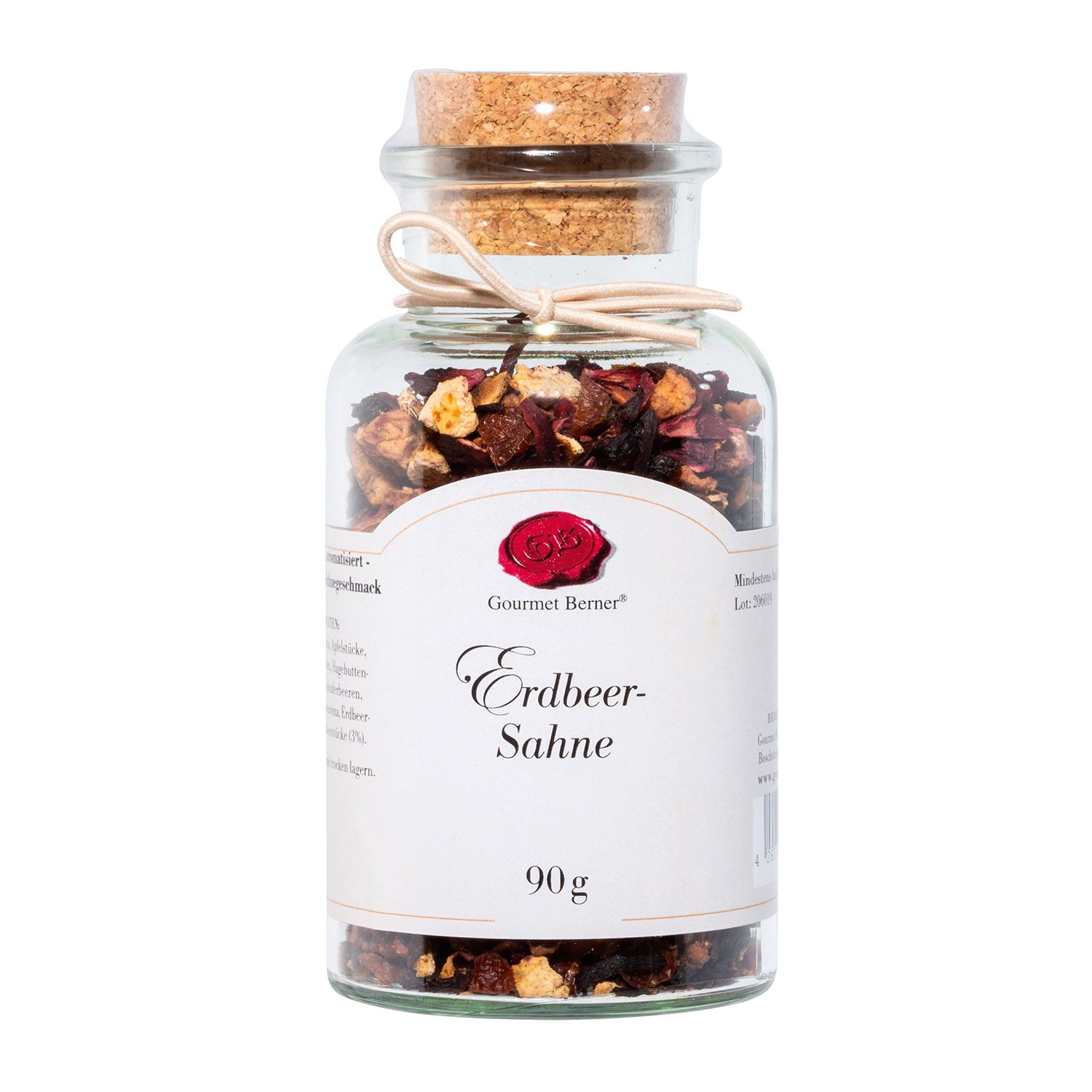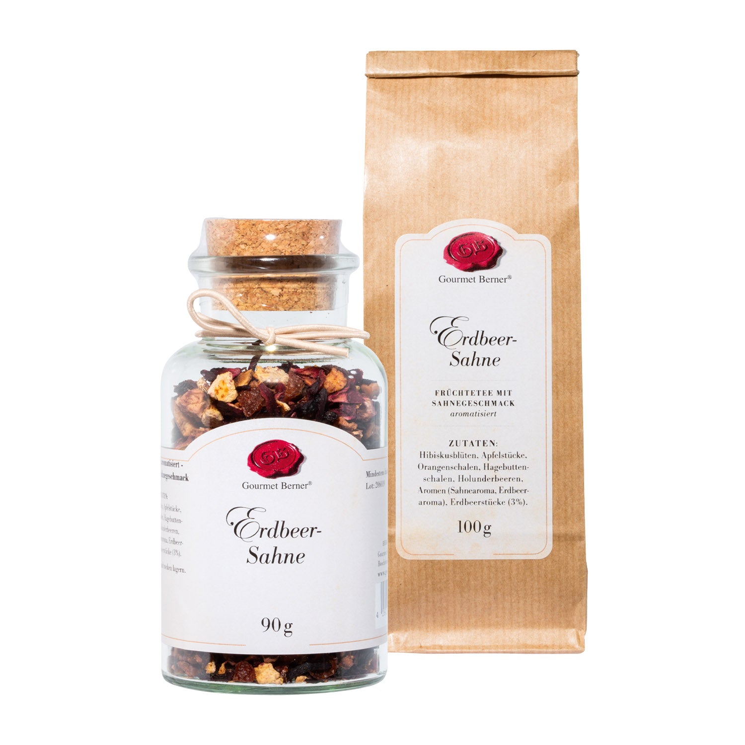 Erdbeer-Sahne, Früchtetee, aromatisiert - mit Erdbeer-Sahne-GeschmackZiehzeit: 6-8 Minuten. Tee immer mit frischem, sprudelnd kochendem Wasser übergießen.