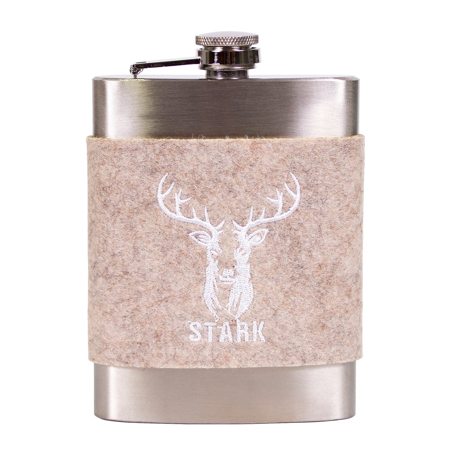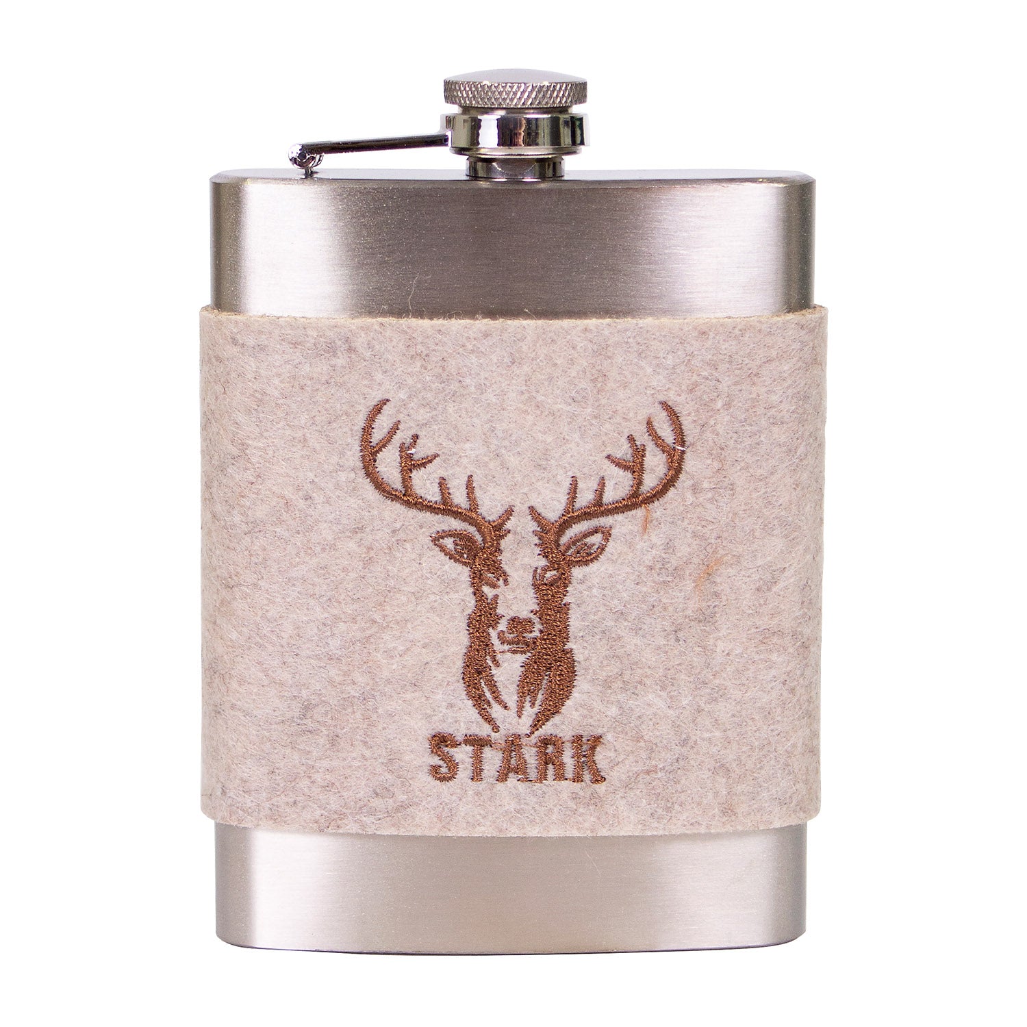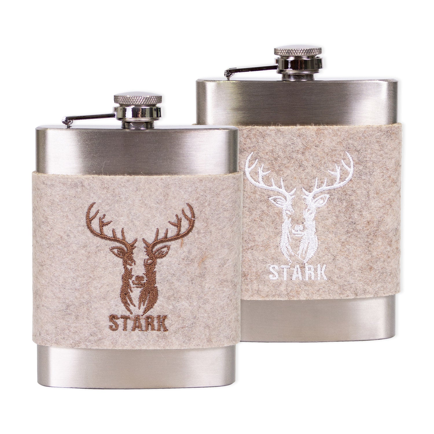 0,2l Flachmann, bestickt mit weißem oder braunem Hirsch.