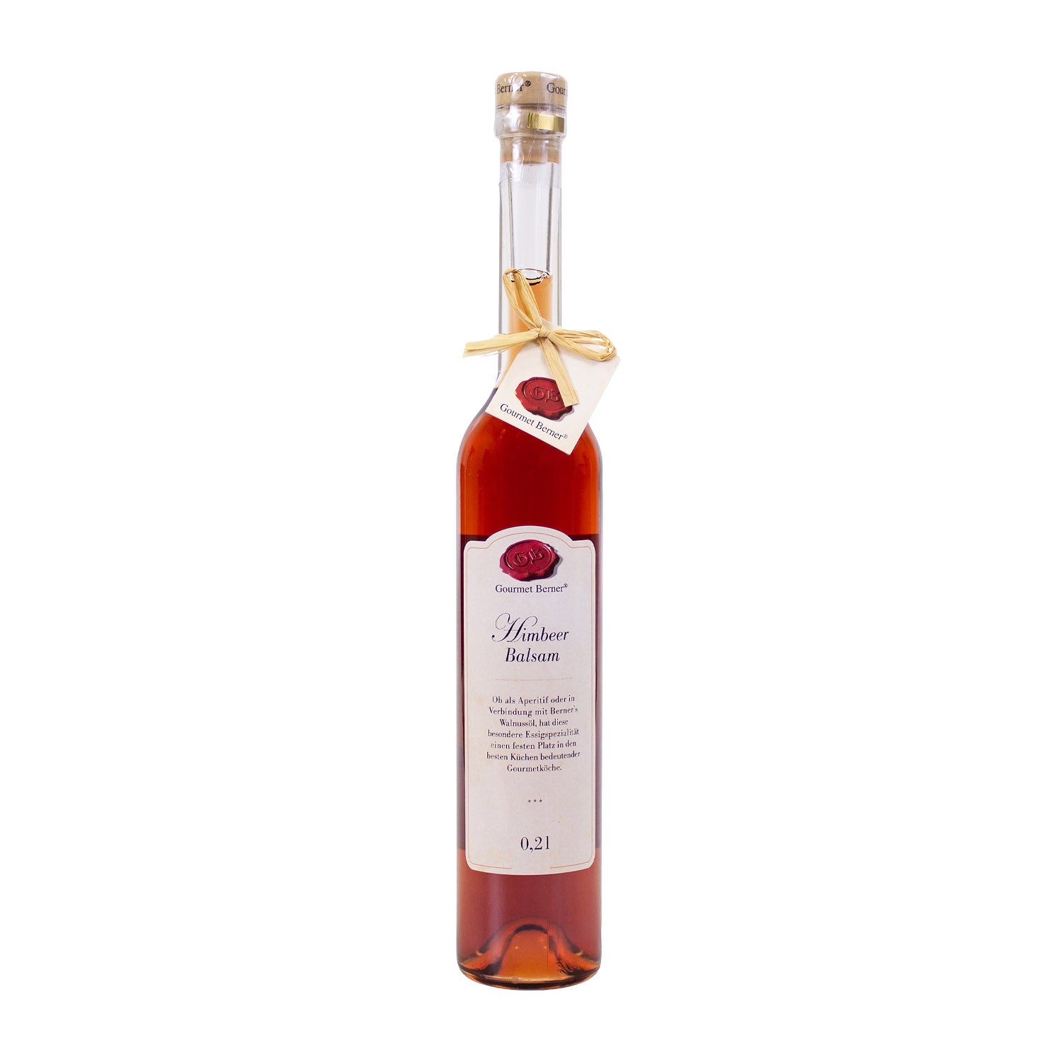 Himbeer Balsam, Essigspezialität aus Weißweinessig mit Himbeeraroma, 4% Säure Ob als Aperitif oder in Verbindung mit Berner’s Walnussöl, hat diese besondere Essigspezialität einen festen Platz in den besten Küchen bedeutender Gourmetköche.