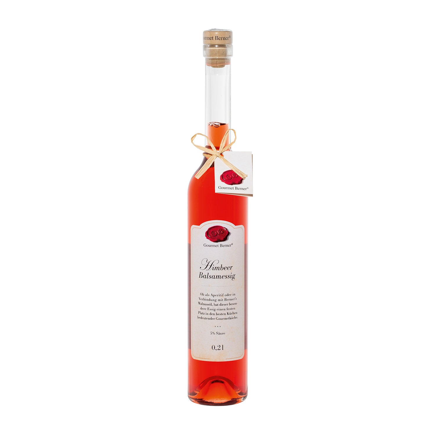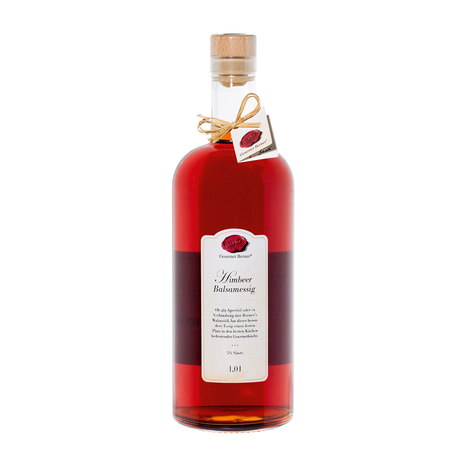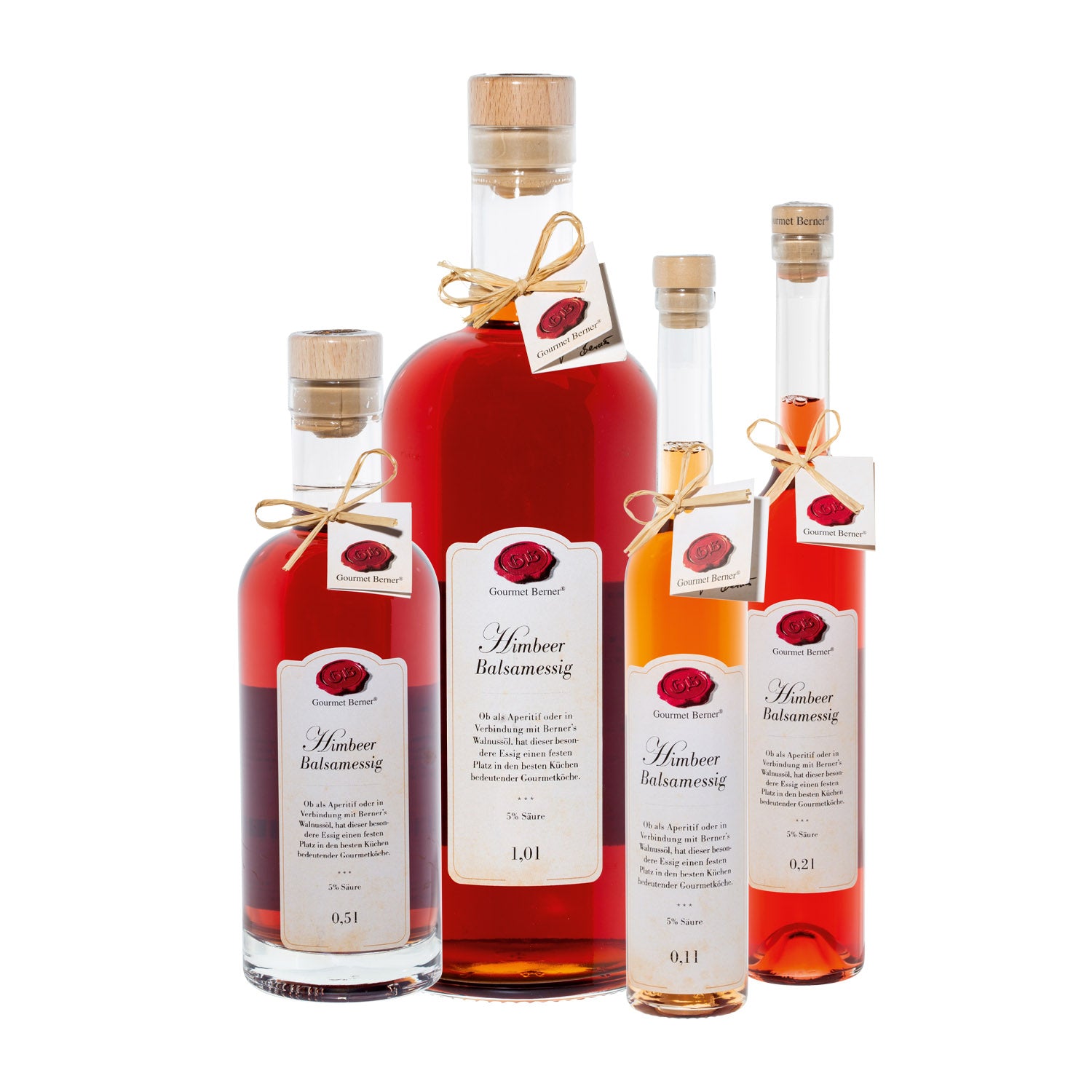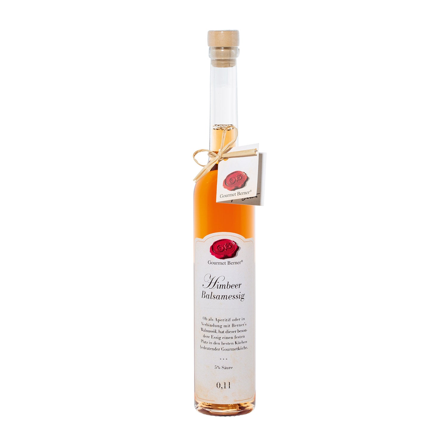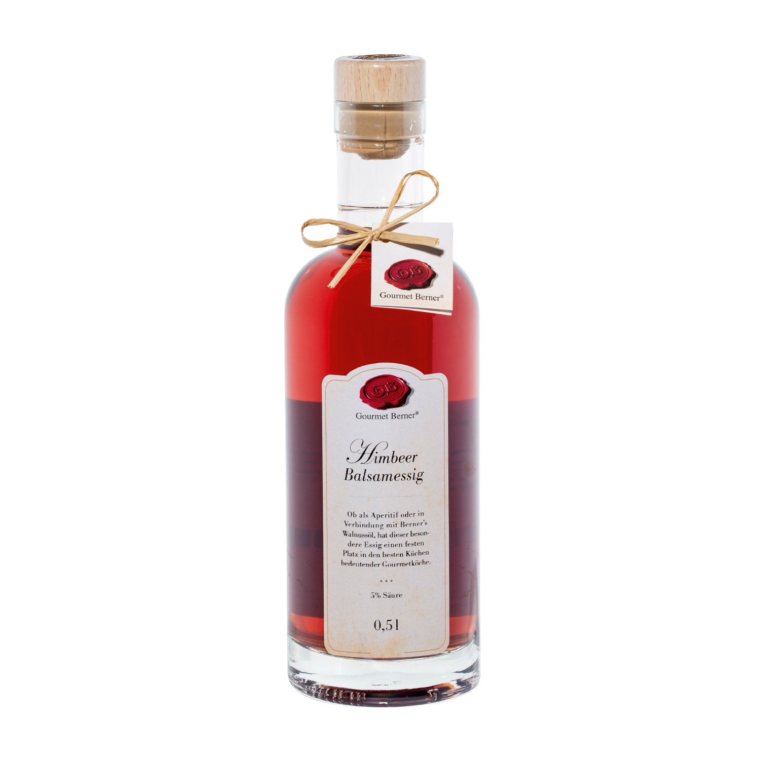 Himbeer Balsamessig, 5% Säure Ob als Aperitif oder in Verbindung mit Berners Walnussöl, hat dieser besondere Essig einen festen Platz in den besten Küchen bedeutender Gourmetköche.