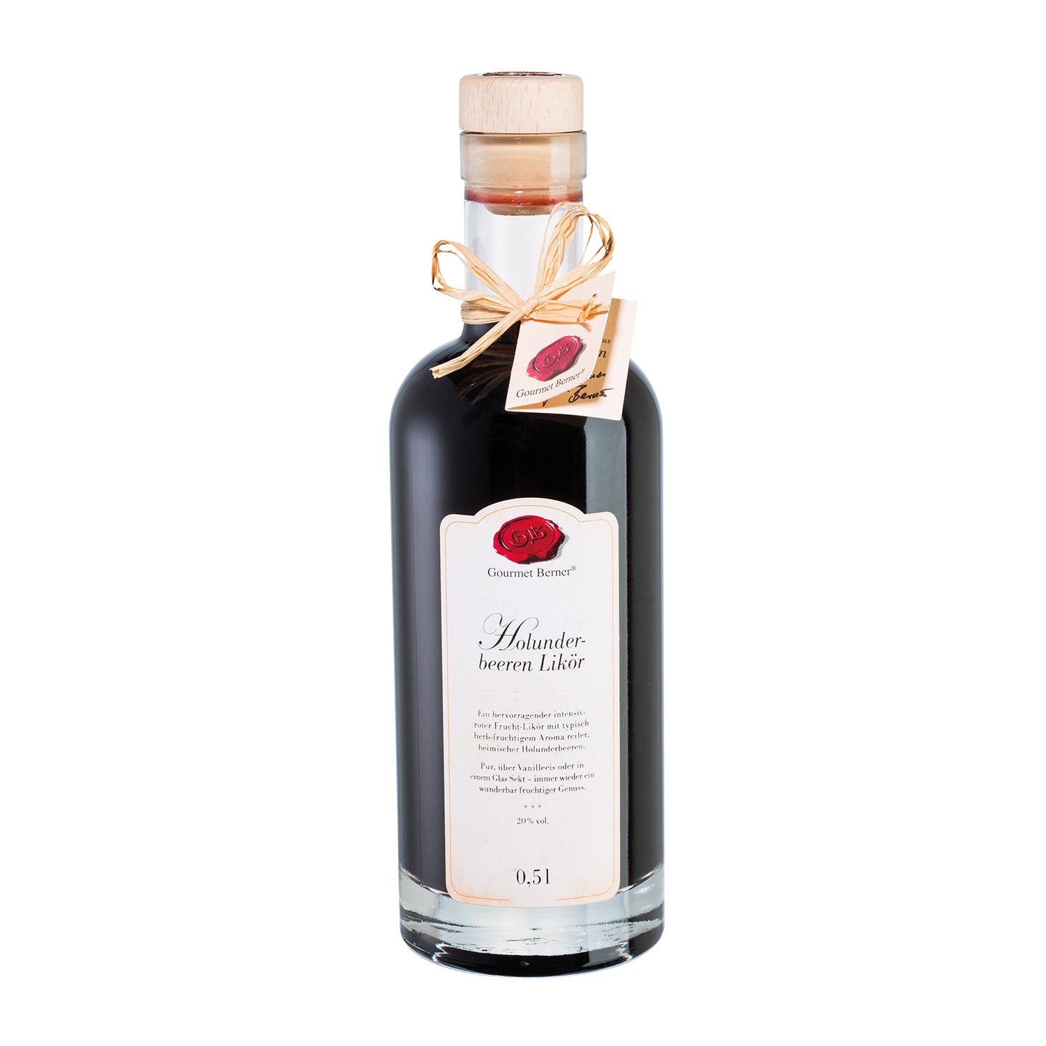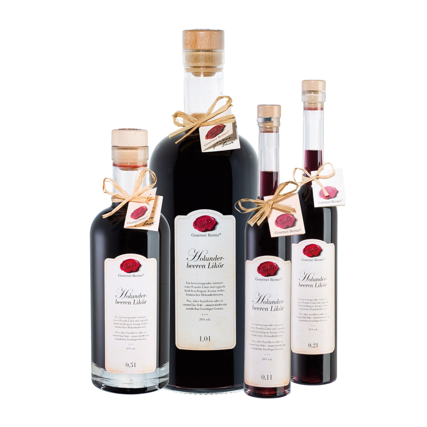 Holunderbeeren Likör Ein hervorragender intensiv-roter Frucht-Likör mit typisch herb-fruchtigem Aroma reifer, heimischer Holunderbeeren. Pur, über Vanilleeis oder in einem Glas Sekt immer wieder ein wunderbar fruchtiger Genuss.