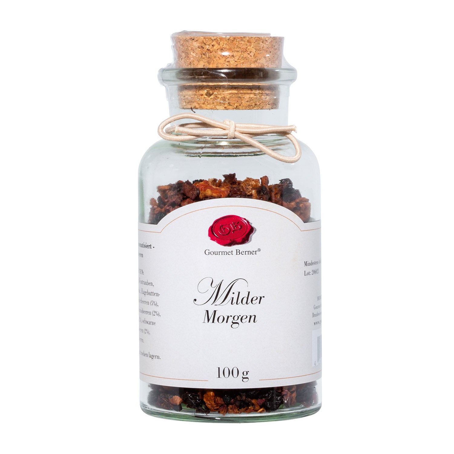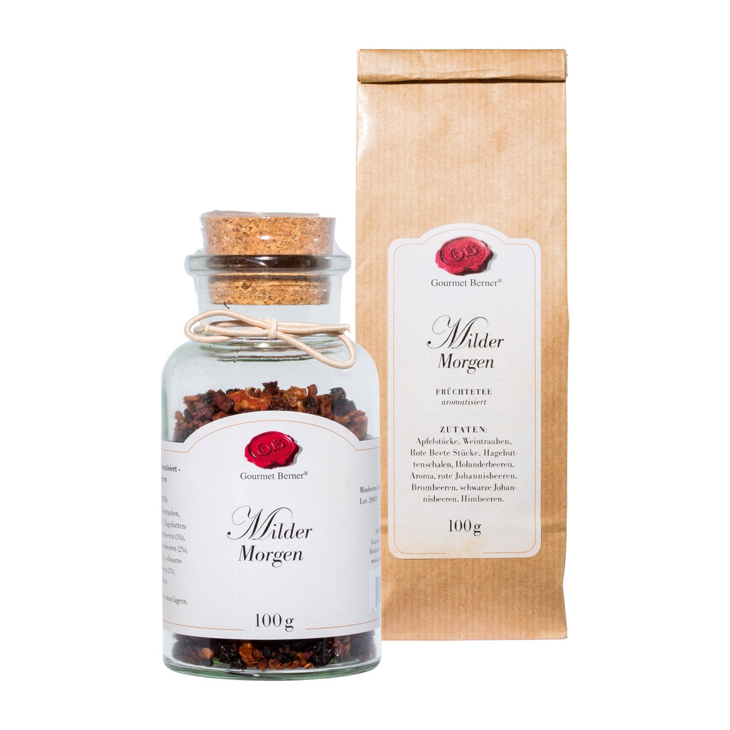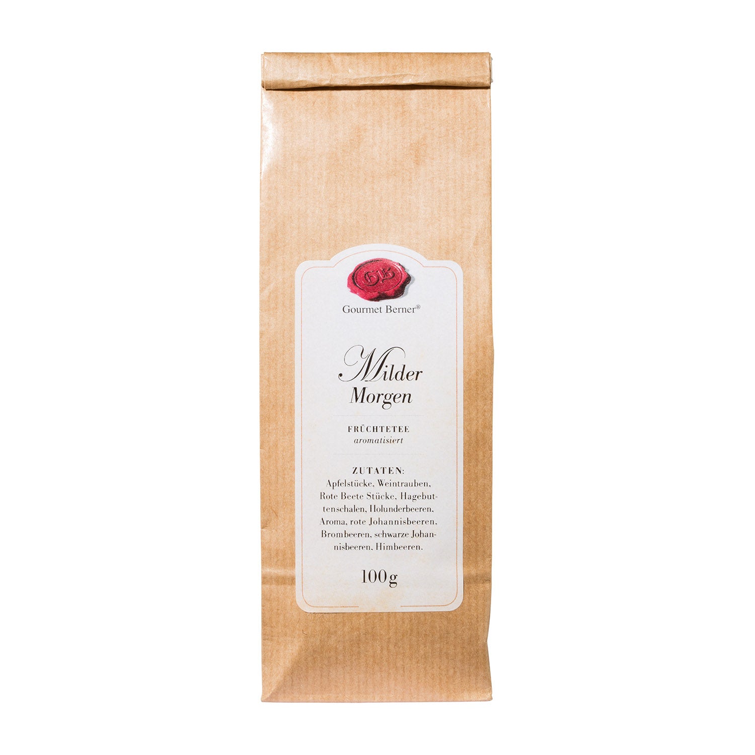 Milder Morgen, Früchtetee, aromatisiert - WaldbeerenZiehzeit: 6-8 Minuten. Tee immer mit frischem, sprudelnd kochendem Wasser übergießen.