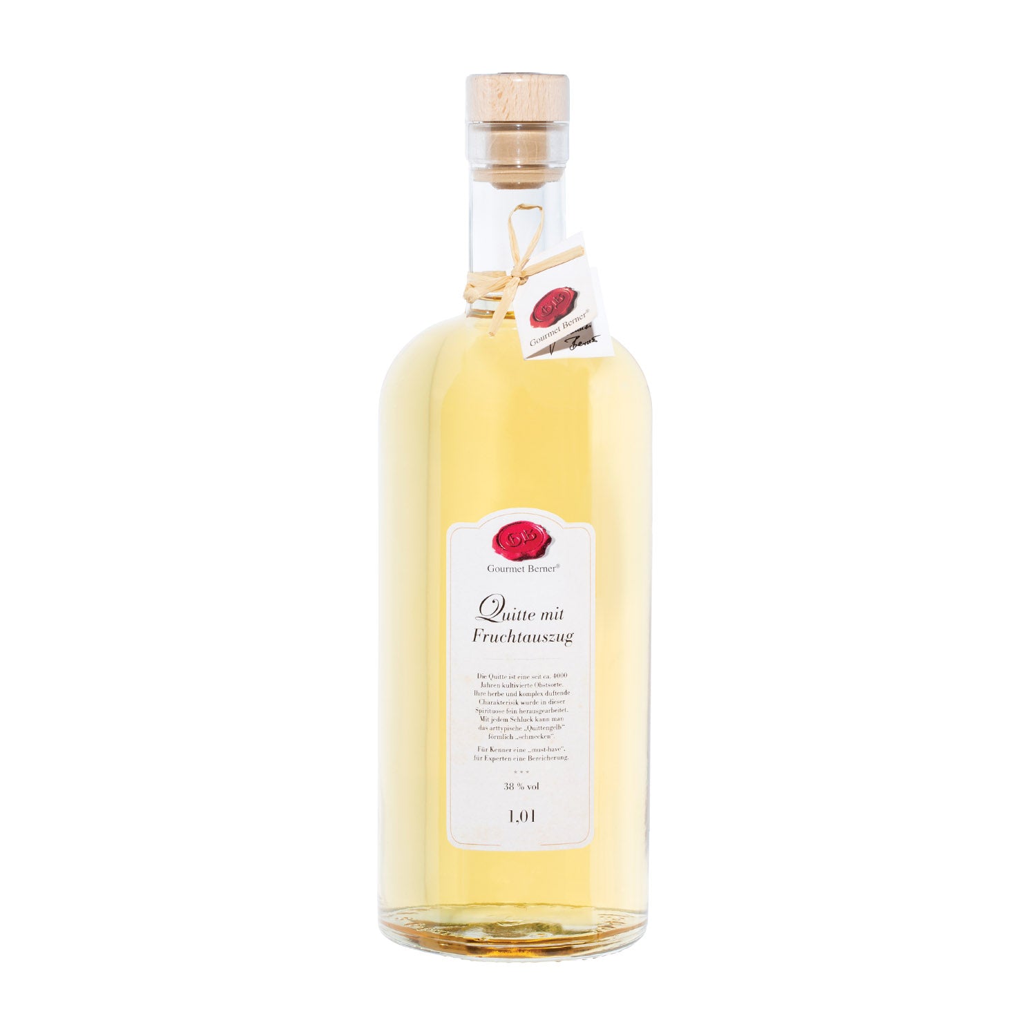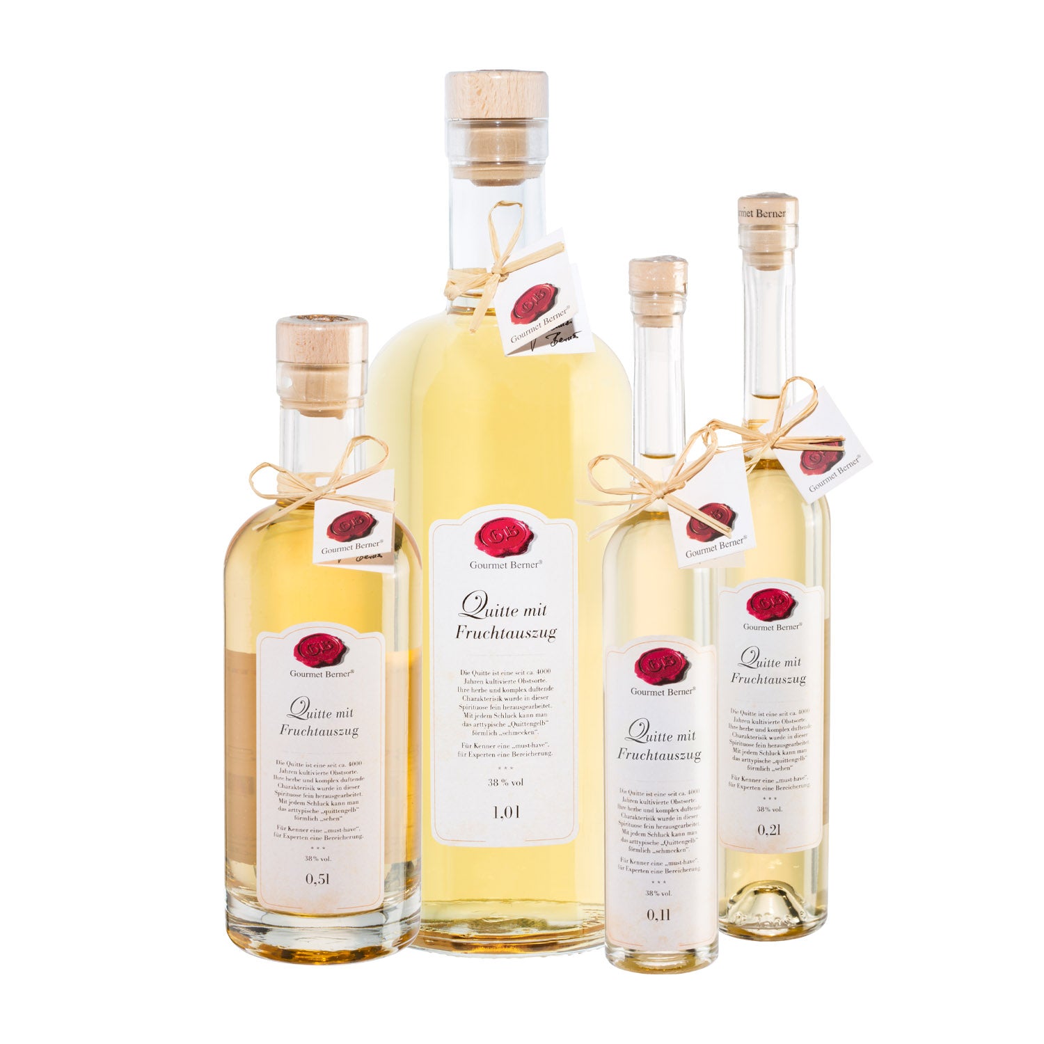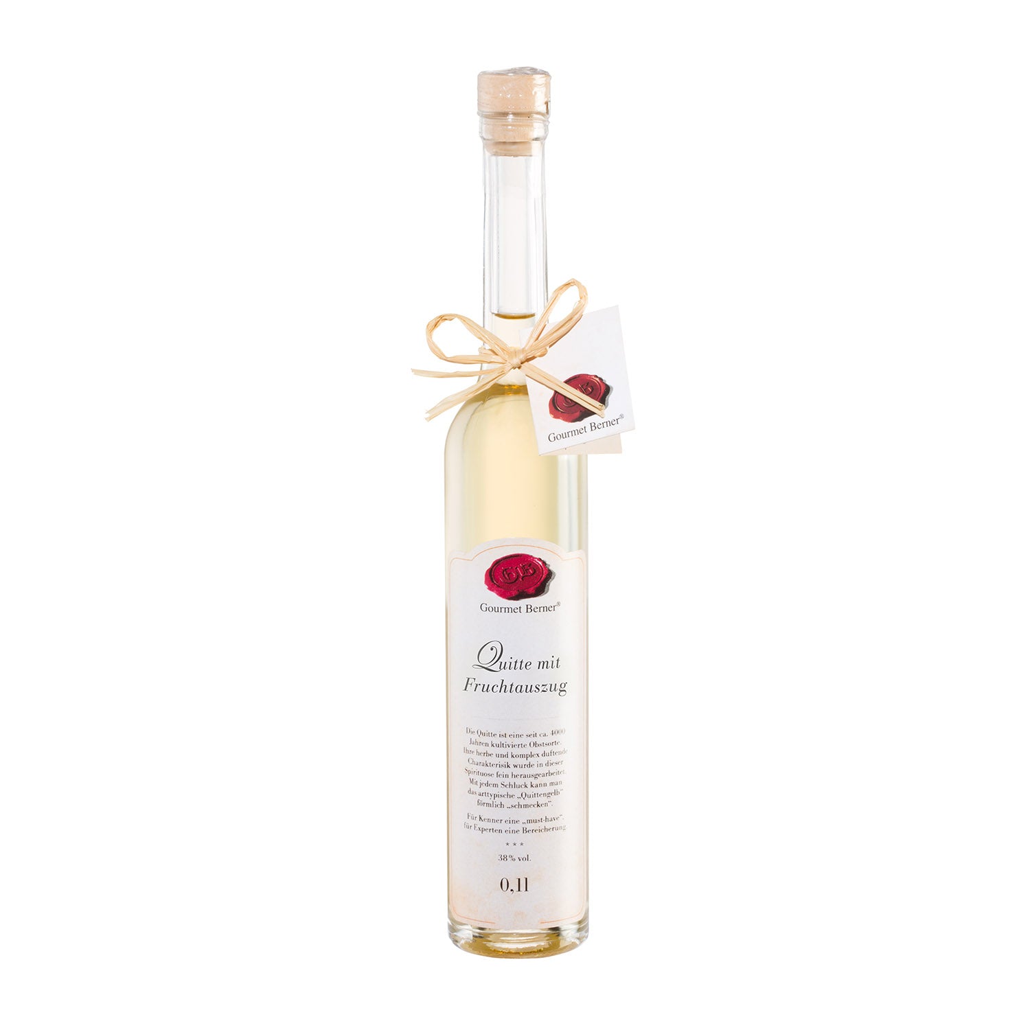 Quitte mit Fruchtauszug, Spirituose aus Quittenbrand und Fruchtauszug Die Quitte ist eine seit ca. 4000 Jahren kultivierte Obstsorte. Ihre herbe und komplex duftende Charakterisik wurde in dieser Spirituose fein herausgearbeitet. Mit jedem Schluck kann man das arttypische Quittengelb förmlich schmecken. Für Kenner eine must-have, für Experten eine Bereicherung.