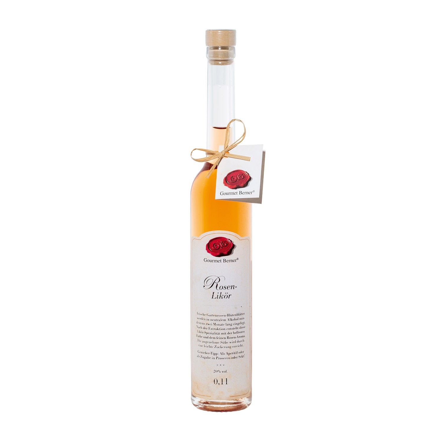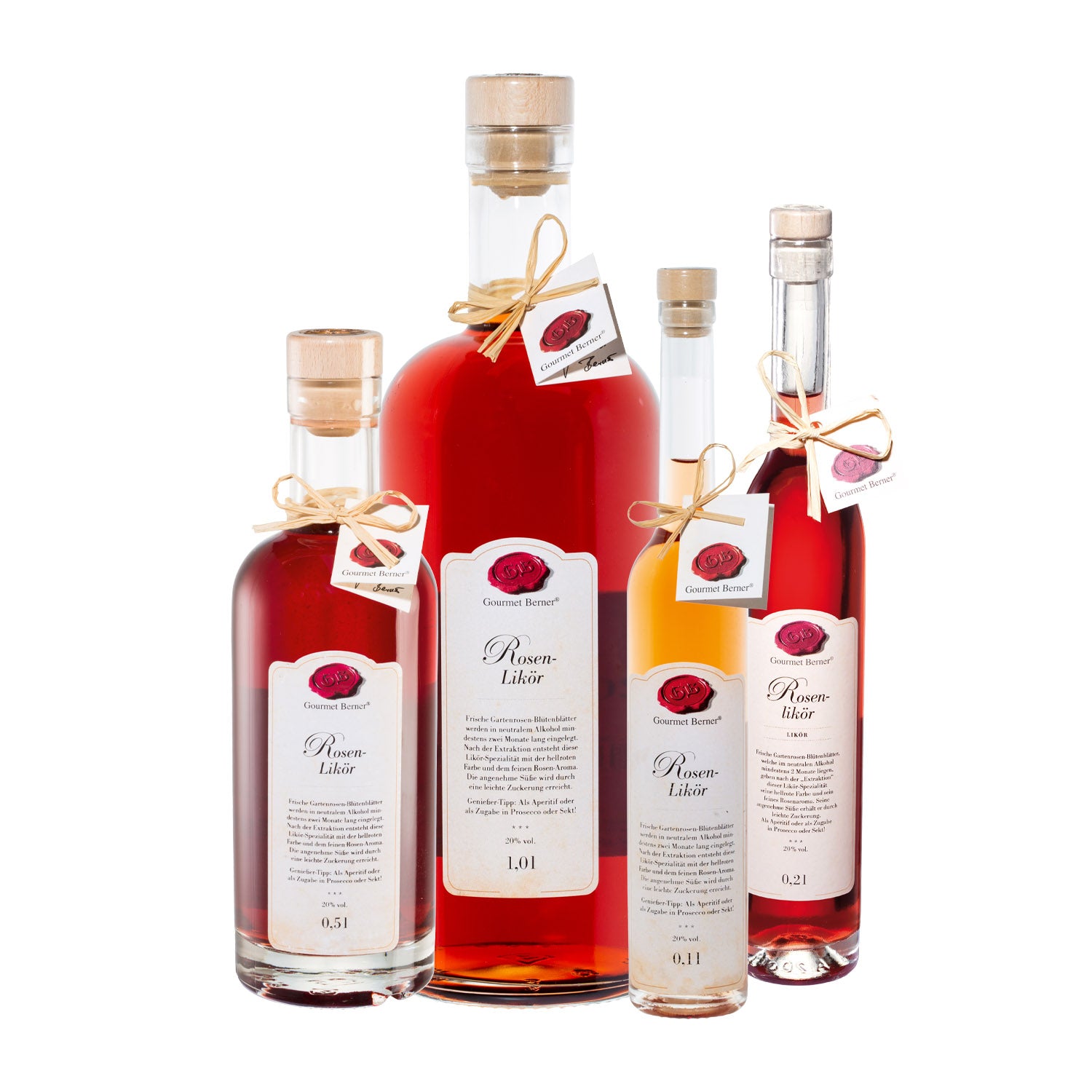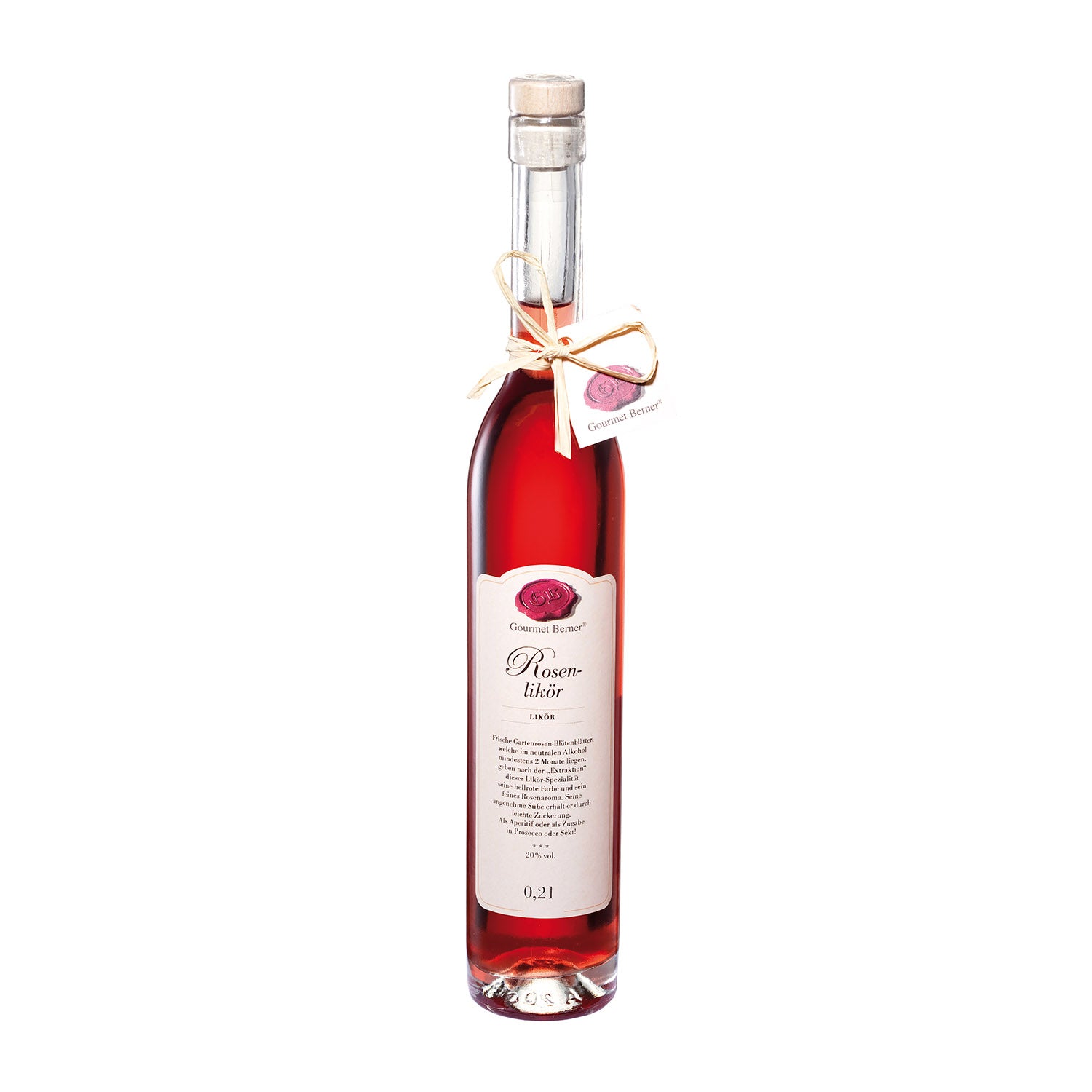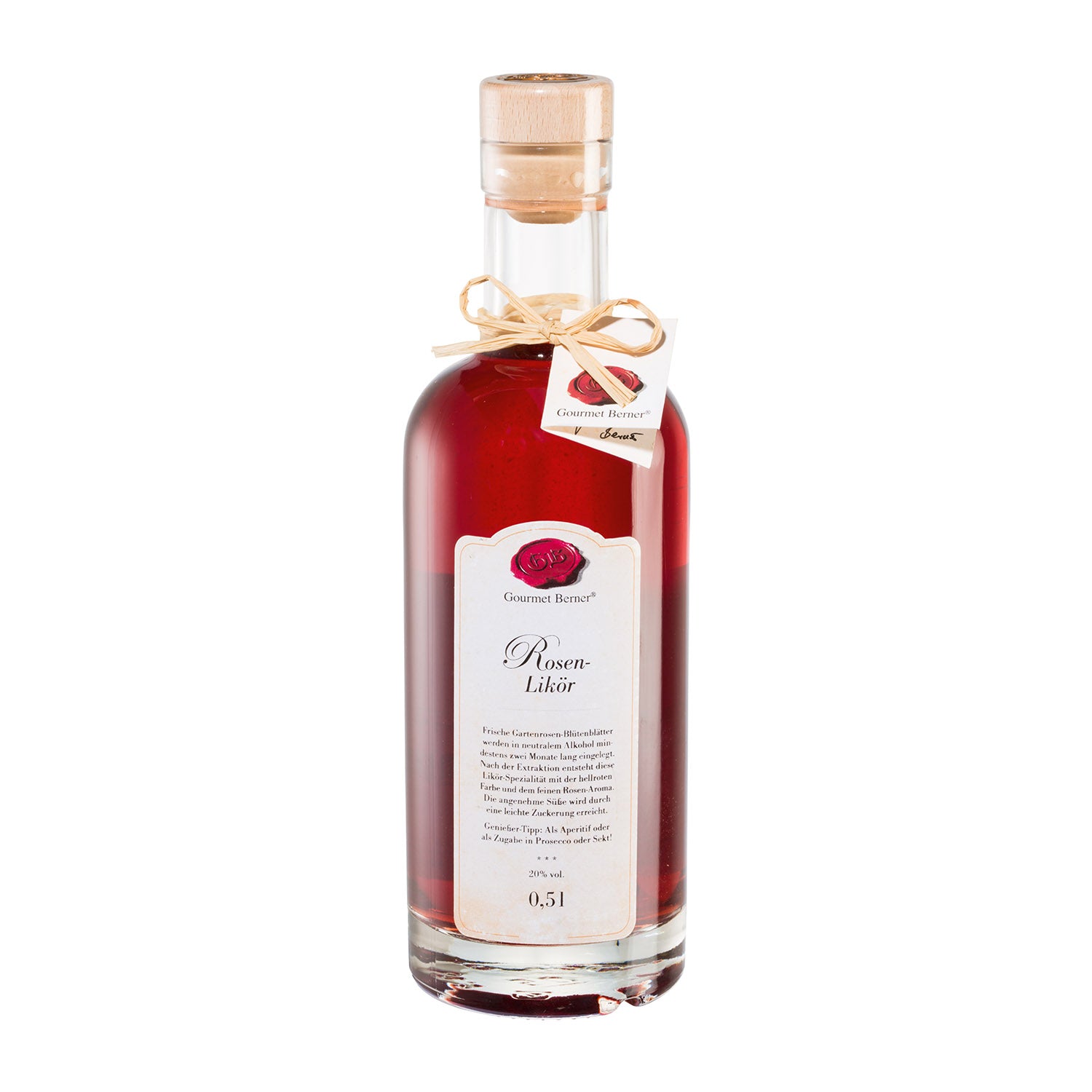 Rosen-Likör Frische Gartenrosen-Blütenblätter werden in neutralem Alkohol mindestens zwei Monate lang eingelegt. Der daraus gewonnene Extrakt wird mit weiteren erlesenen Zutaten zur Herstellung dieser Likör-Spezialität mit der hellroten Farbe und dem feinen Rosen-Aroma verwendet. Durch Zuckerung wird eine angenehme Süße erreicht. Genießer-Tipp: Als Aperitif oder als Zugabe in Prosecco oder Sekt!