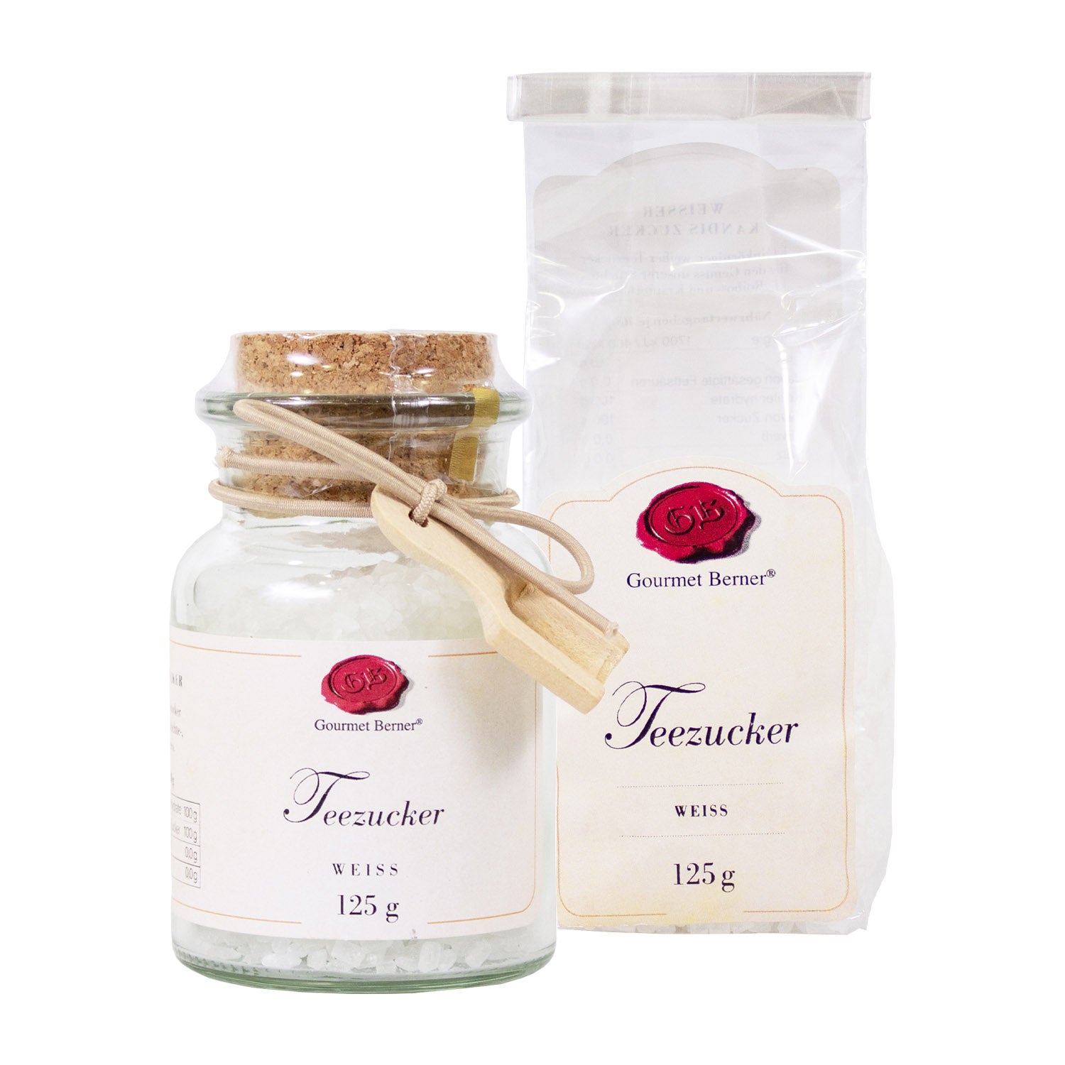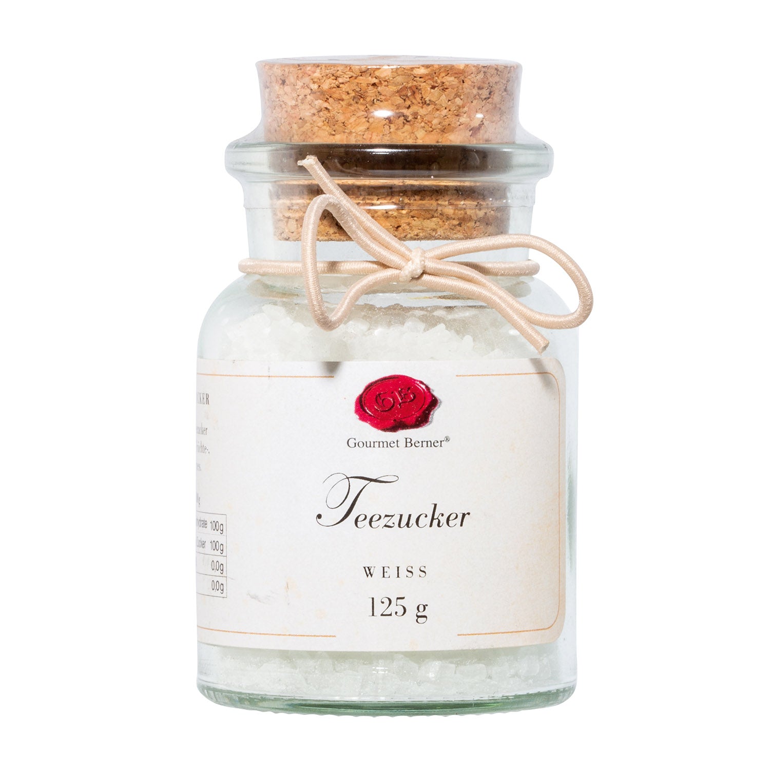 Weißer KandiszuckerKleinkörniger, weißer Teezucker für den Genuss unserer Früchte-, Rooibos- und Kräutertees.